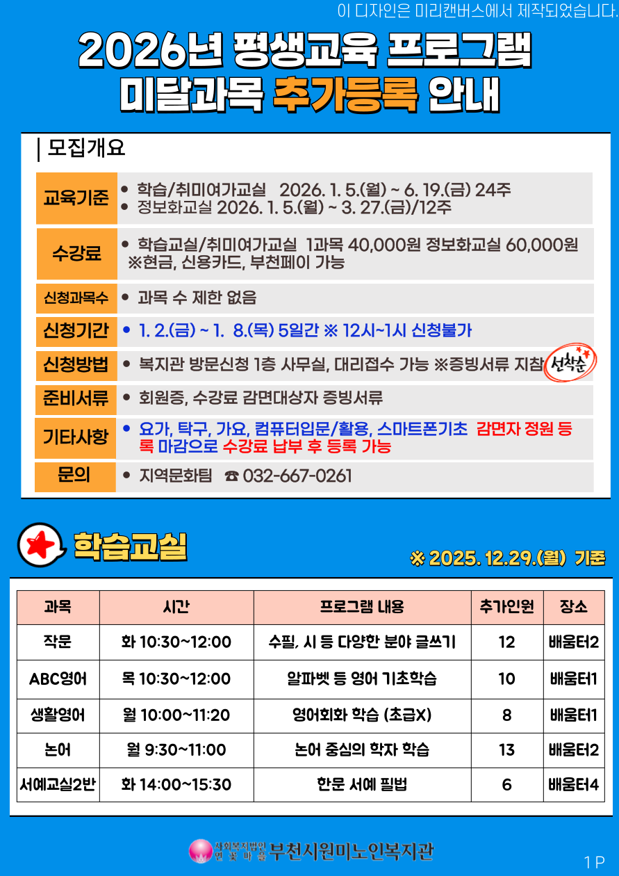 춘의종합사회복지관 2026년 무료급식소 식자재 납품 선...
