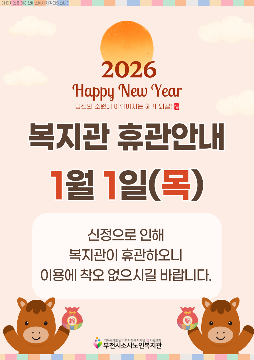 [부천시소사노인복지관] 부천시소사노인복지관 신정 휴관 안내