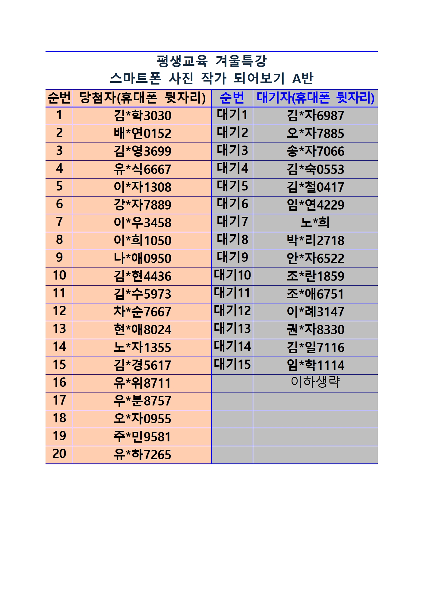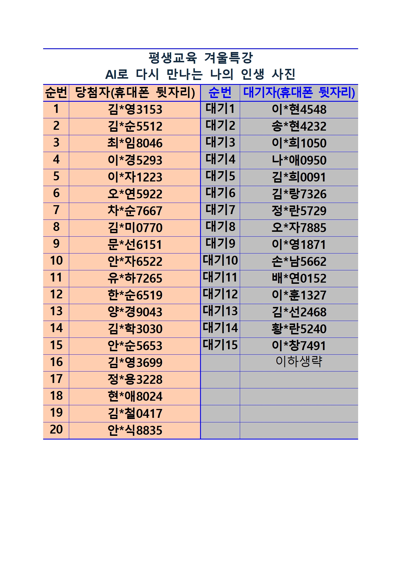 2026년 1학기 평생교육 및 1분기 정보화교육 추첨 ...