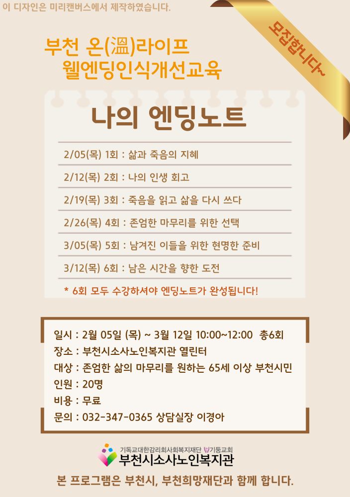 [노인종합상담사업] 부천 온(溫)라이프 웰엔딩인식개선교육「나의 엔딩노트」참여자 모집 안내