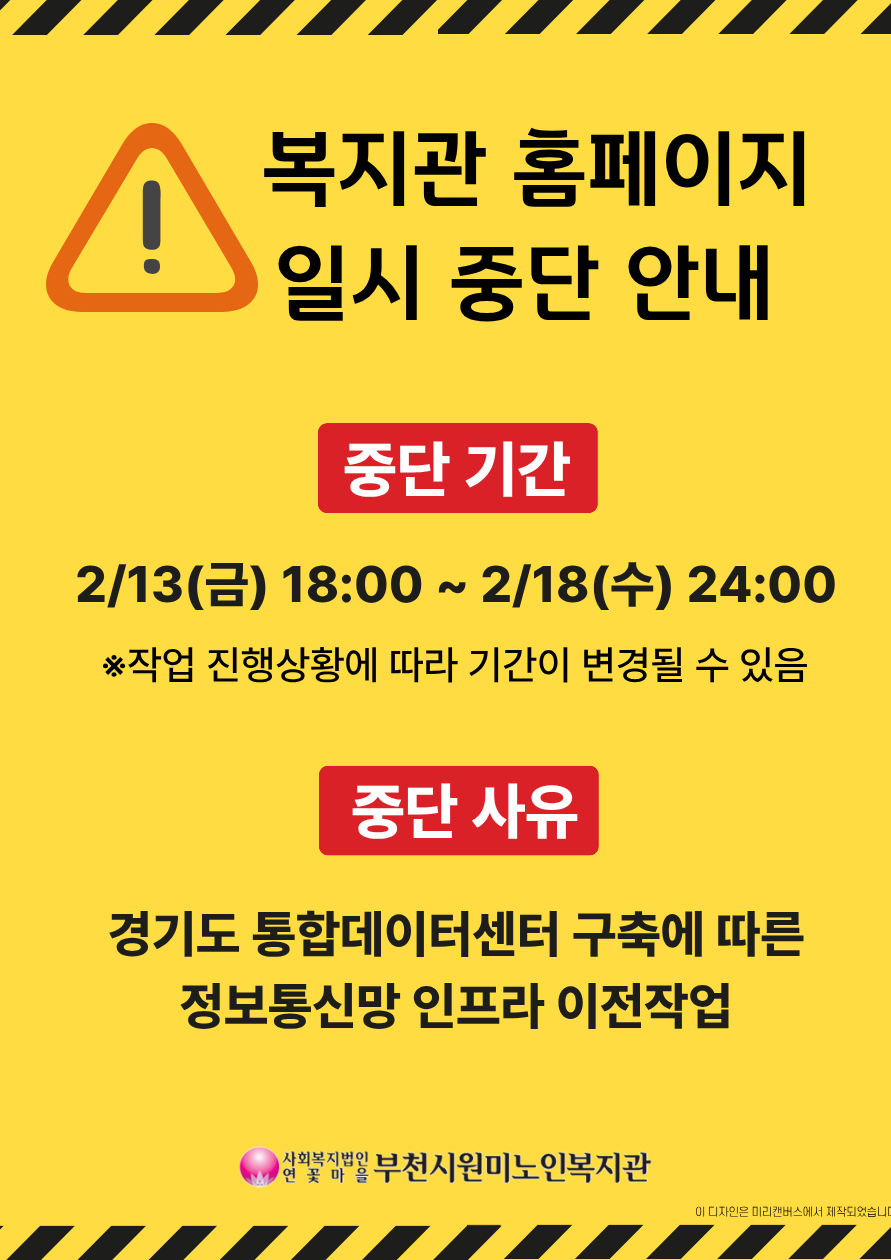 복지관 홈페이지 중단 안내(2월 13일~18일)
