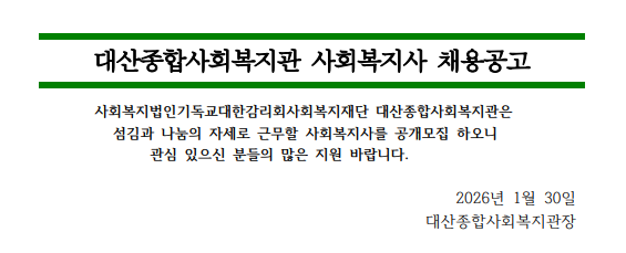 대산종합사회복지관 사회복지사 채용 공고