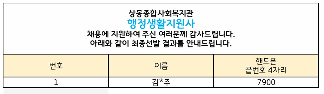 [상동채용결과] 2026년 노인맞춤돌봄서비스 행정생활지원사 최종 합격자 발표
