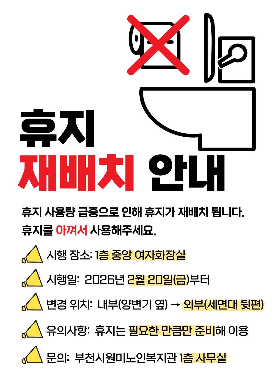 화장실 휴지 재배치 안내