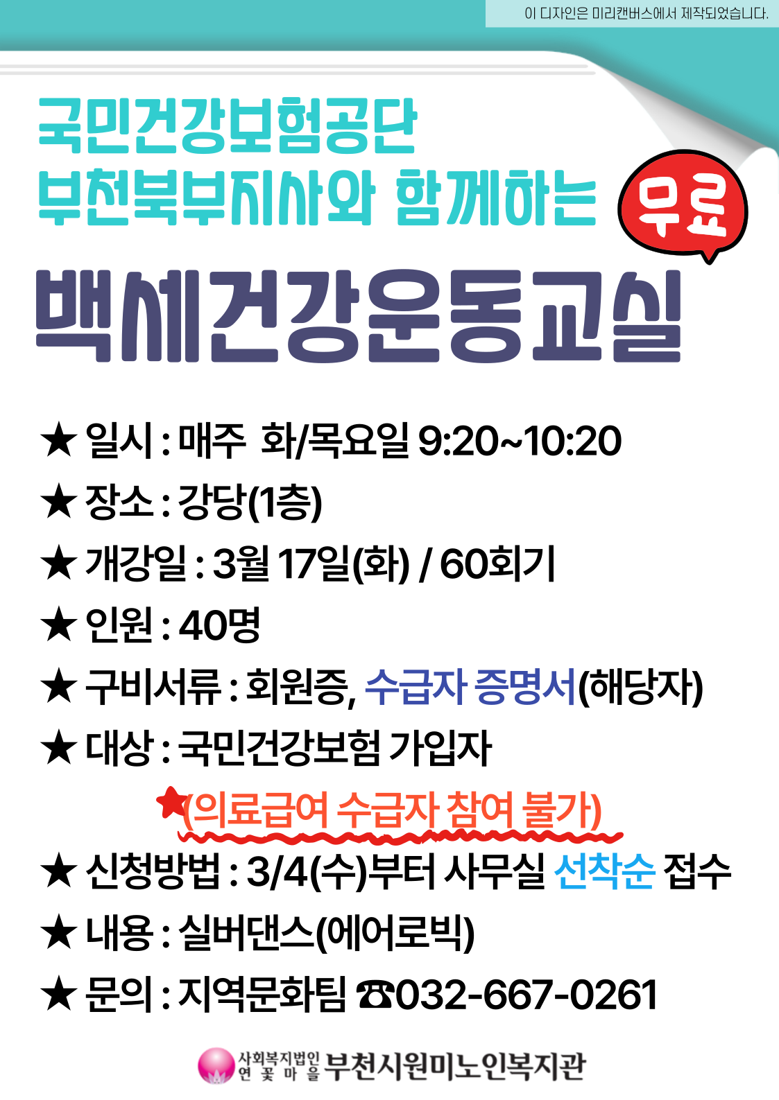 백세건강운동교실 참여 안내