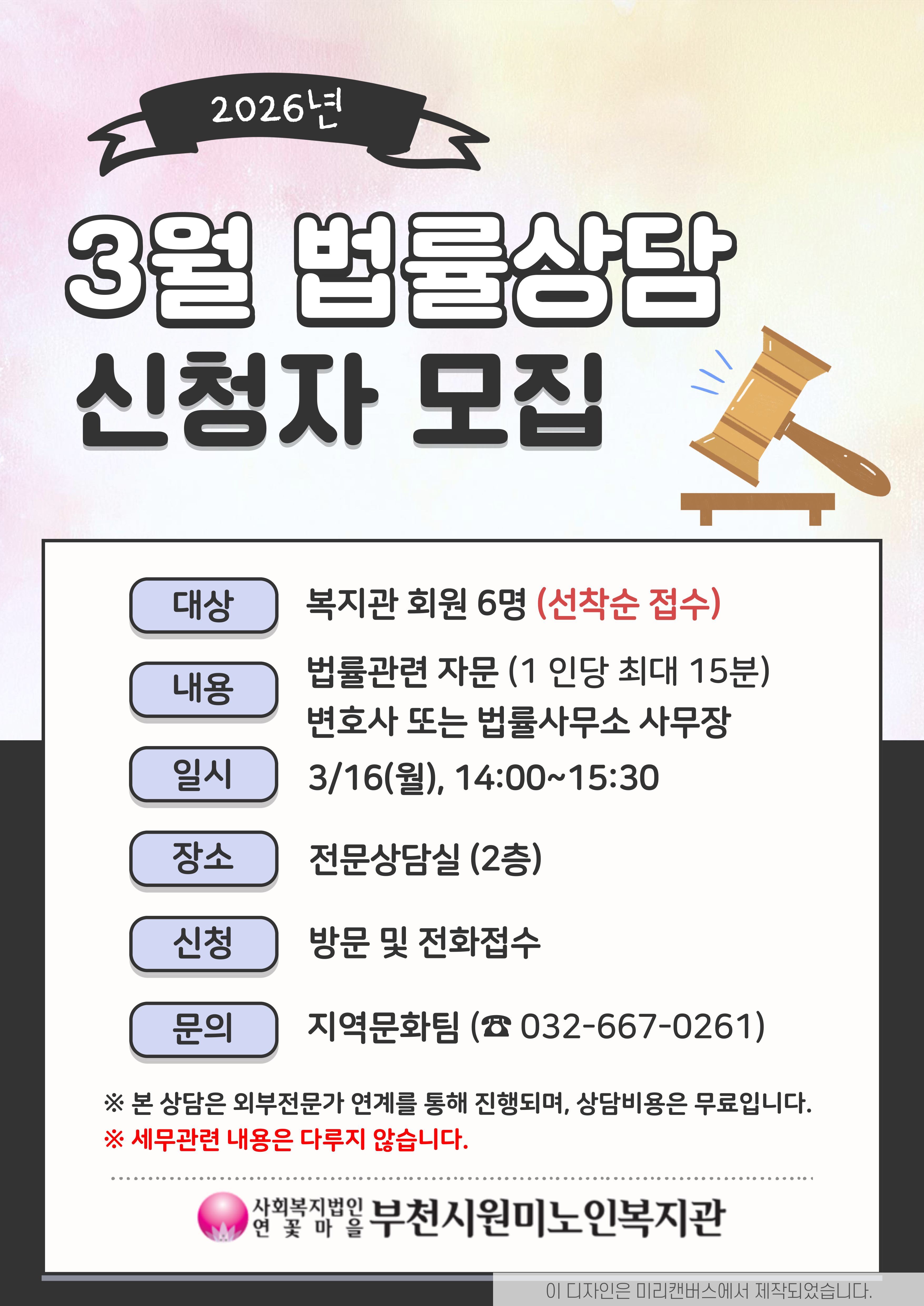 3월 무료 법률상담 신청자 모집