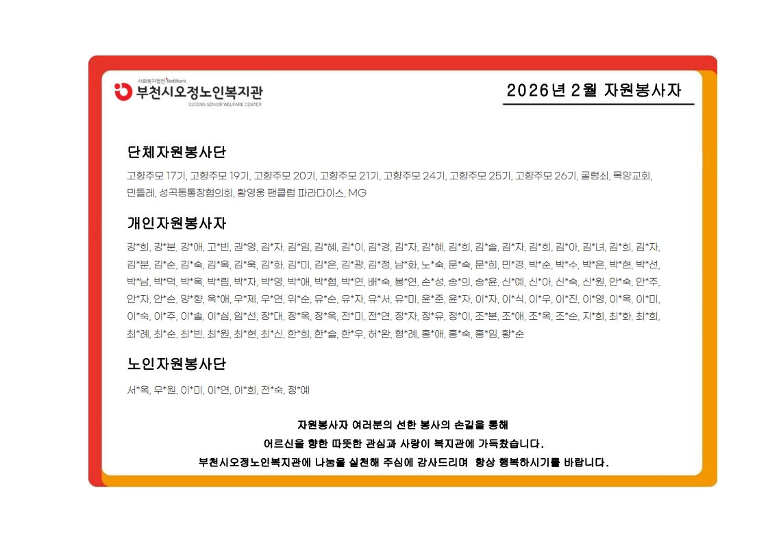 [자원봉사] 2월 자원봉사자 안내
