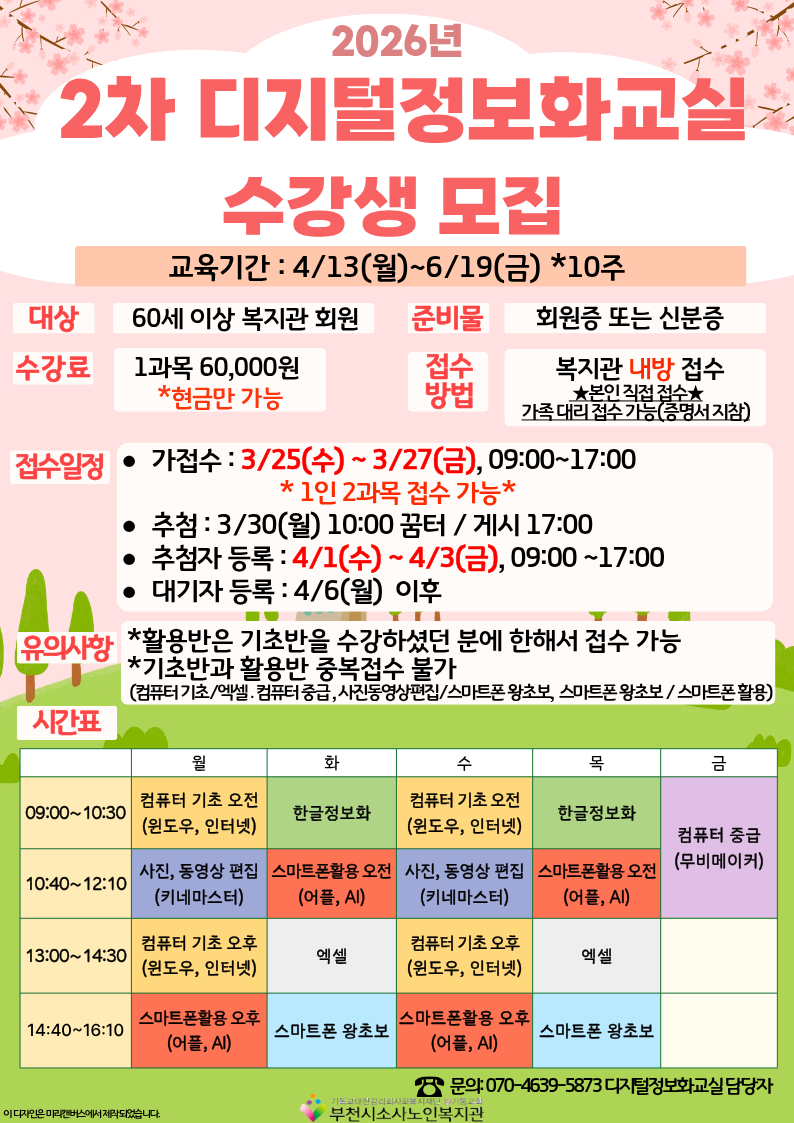 [노년사회화교육사업] 2026년 2차 디지털정보화교실 수강생 모집