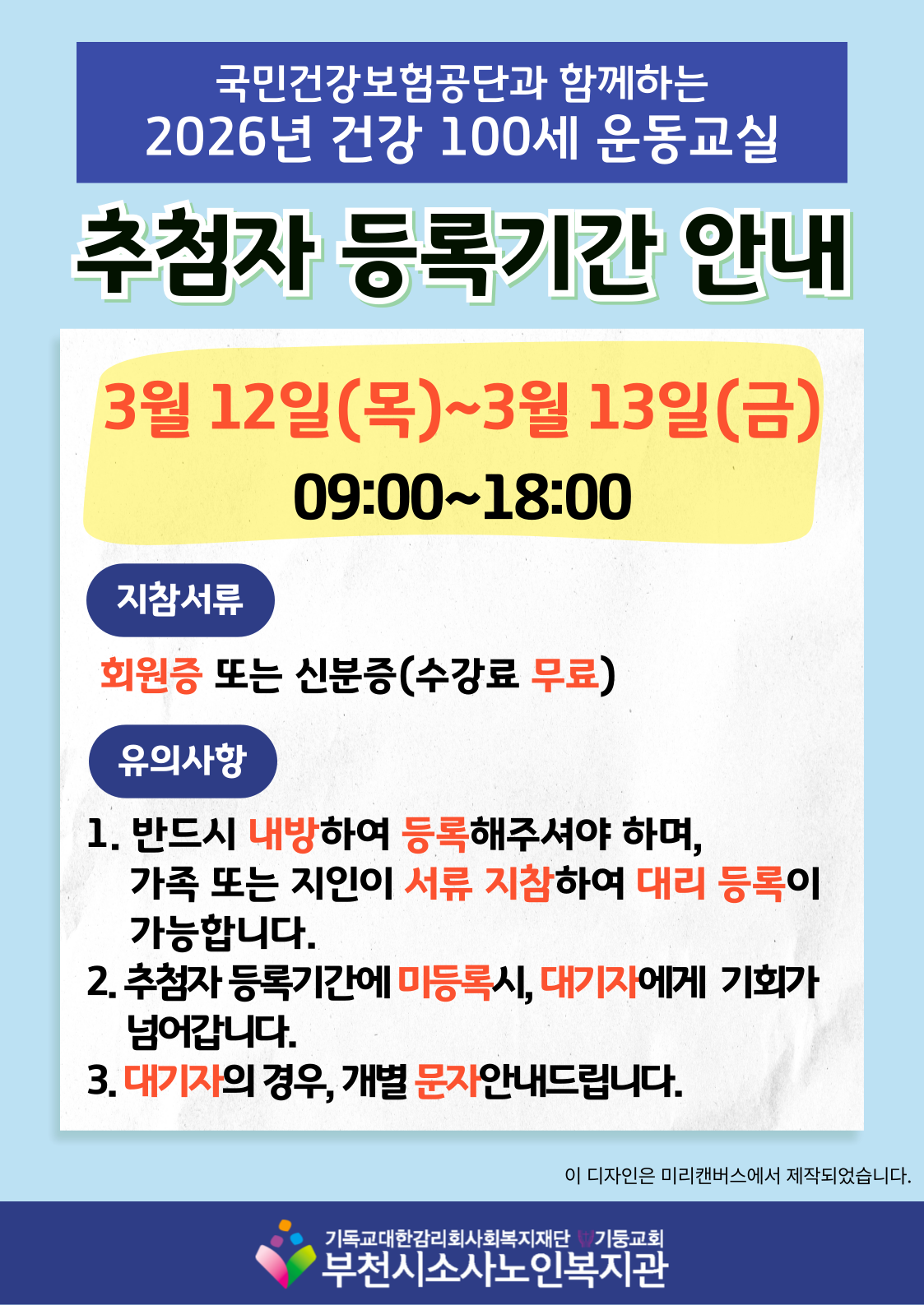 [노년사회화교육사업] 건강 100세 운동교실 추첨자 및 대기자 안내
