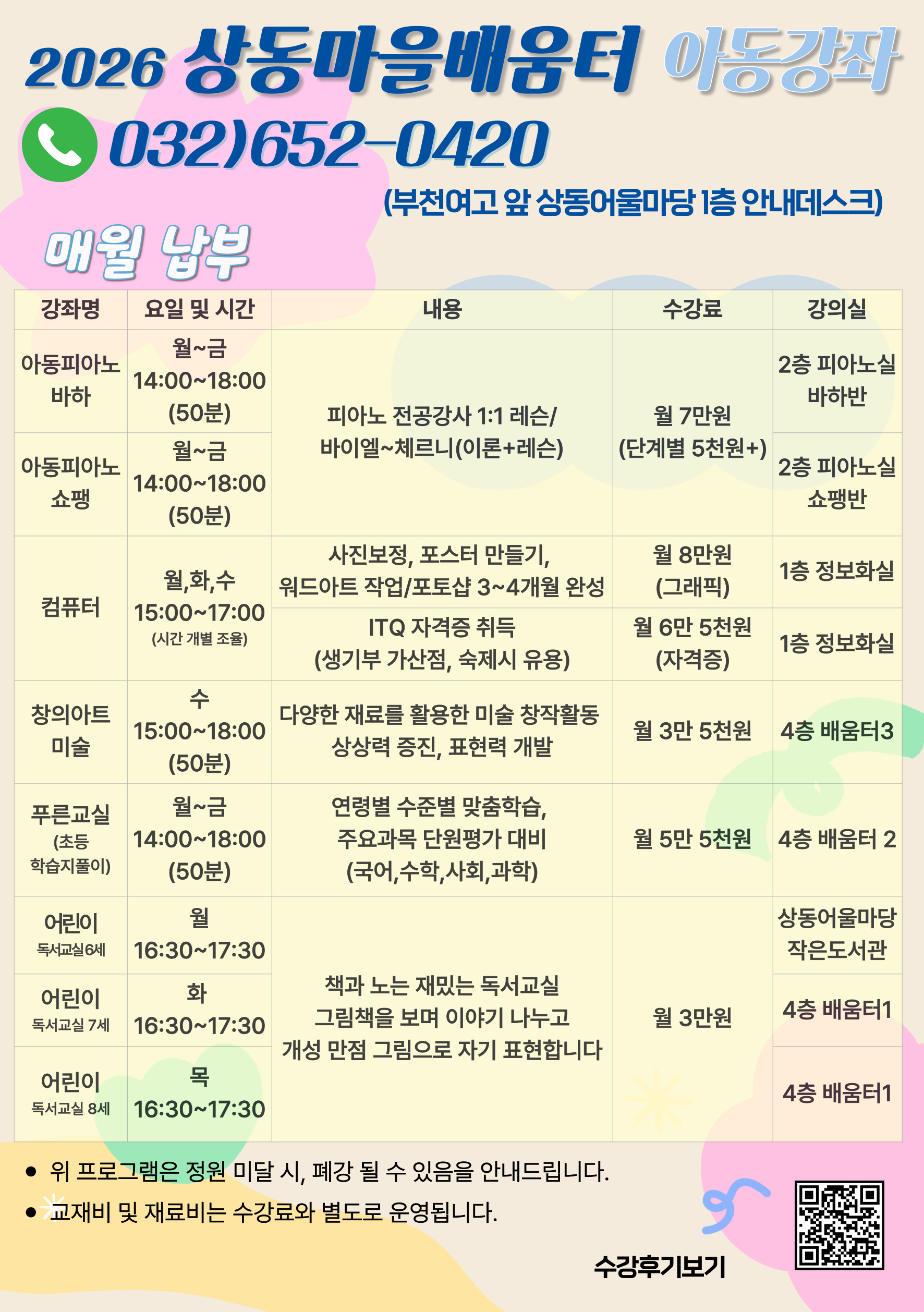 [상동공지/재공지] 2026년 1분기(1-3월) 교육문화프로그램 안내