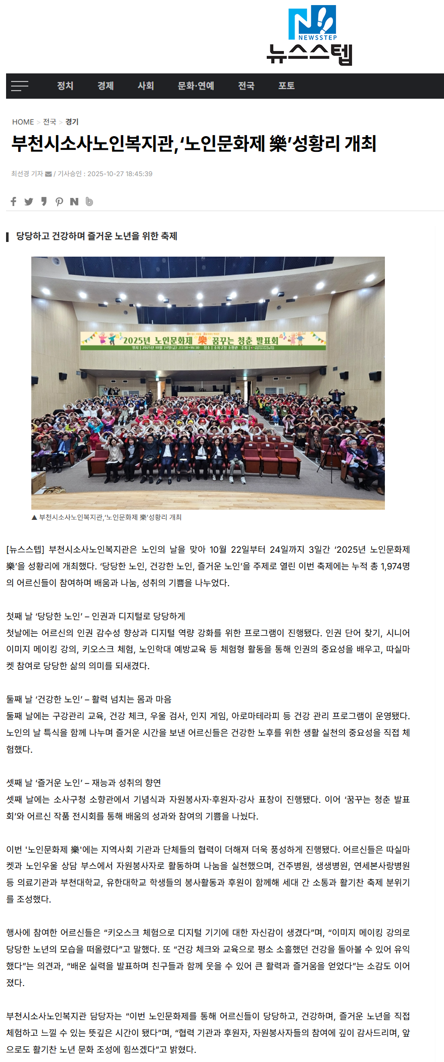 [뉴스스텝]부천시소사노인복지관, '노인문화제樂' 성황리 개최