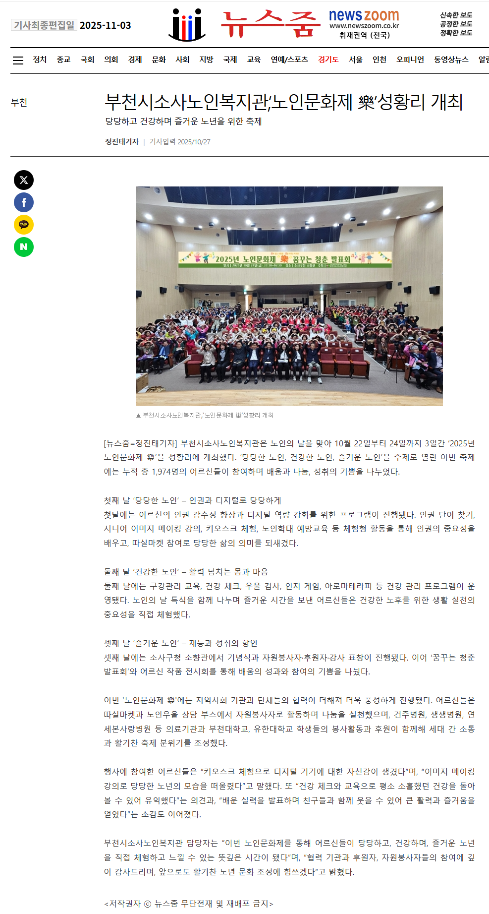 [대한사회복지신문]부천시소사노인복지관, '노인문화제樂'...
