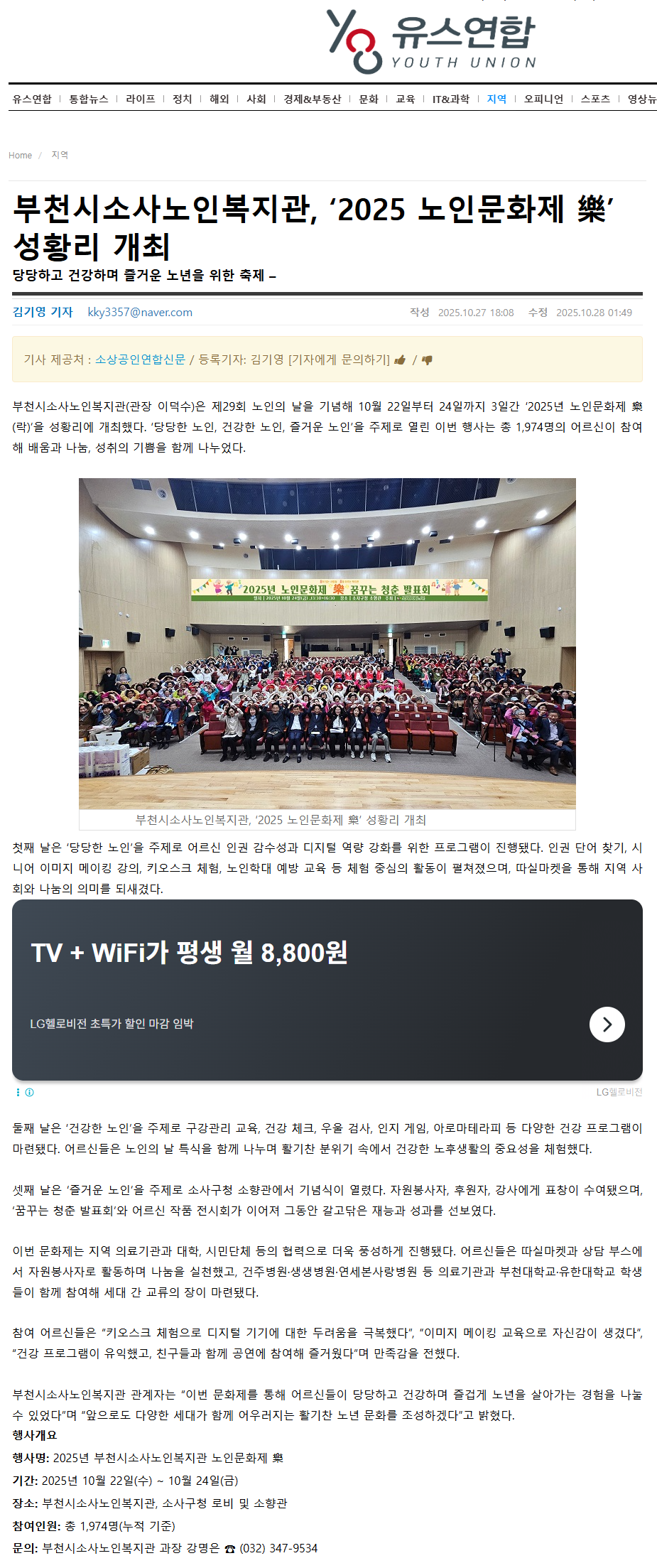 [유스연합]부천시소사노인복지관, '노인문화제樂' 성황리 개최