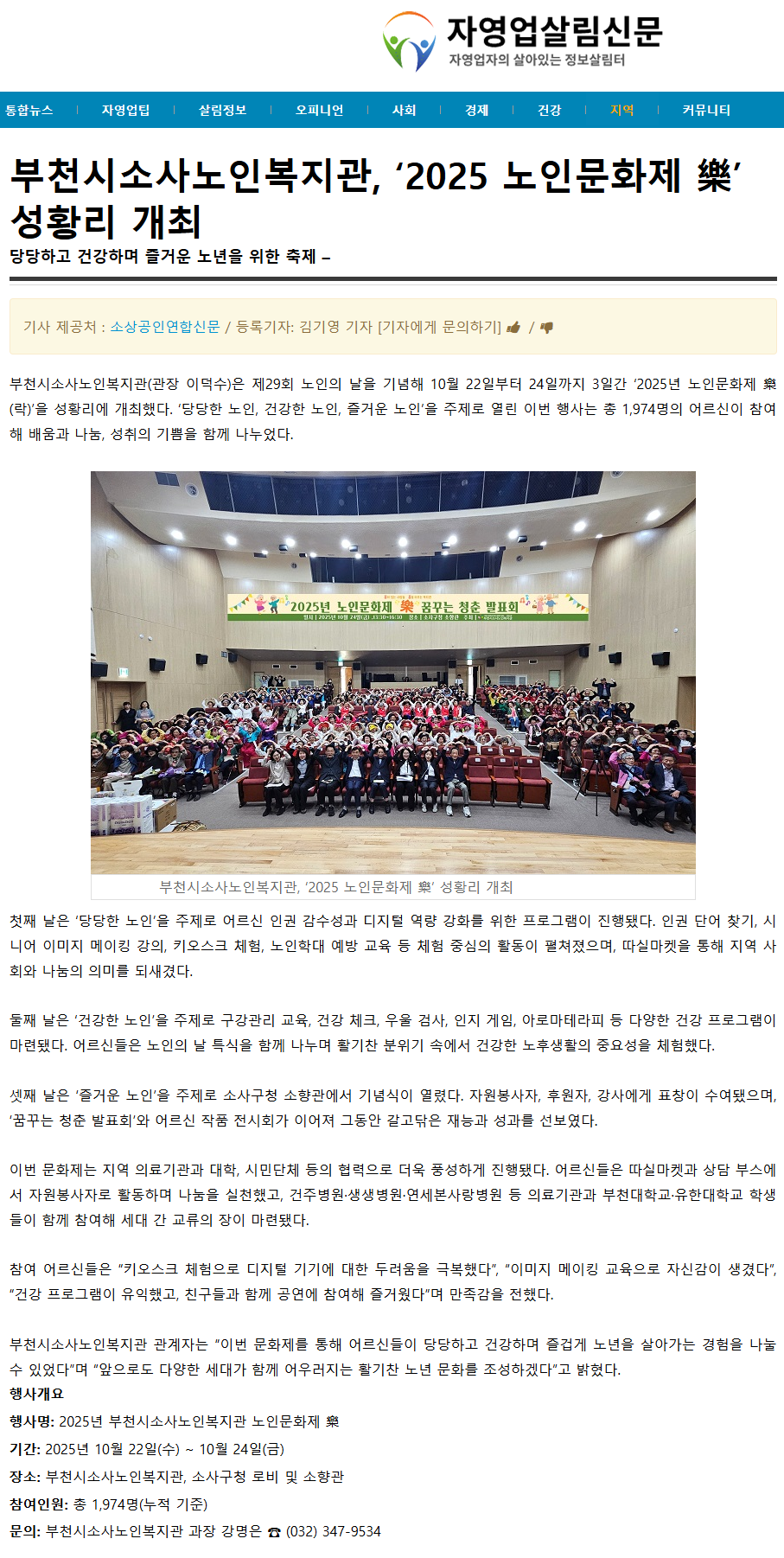 [자영업살림신문]부천시소사노인복지관, '노인문화제樂' 성황리 개최