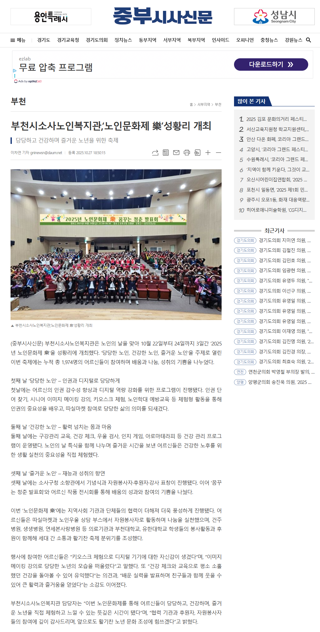 [중부시사신문]부천시소사노인복지관, '노인문화제樂' 성황리 개최