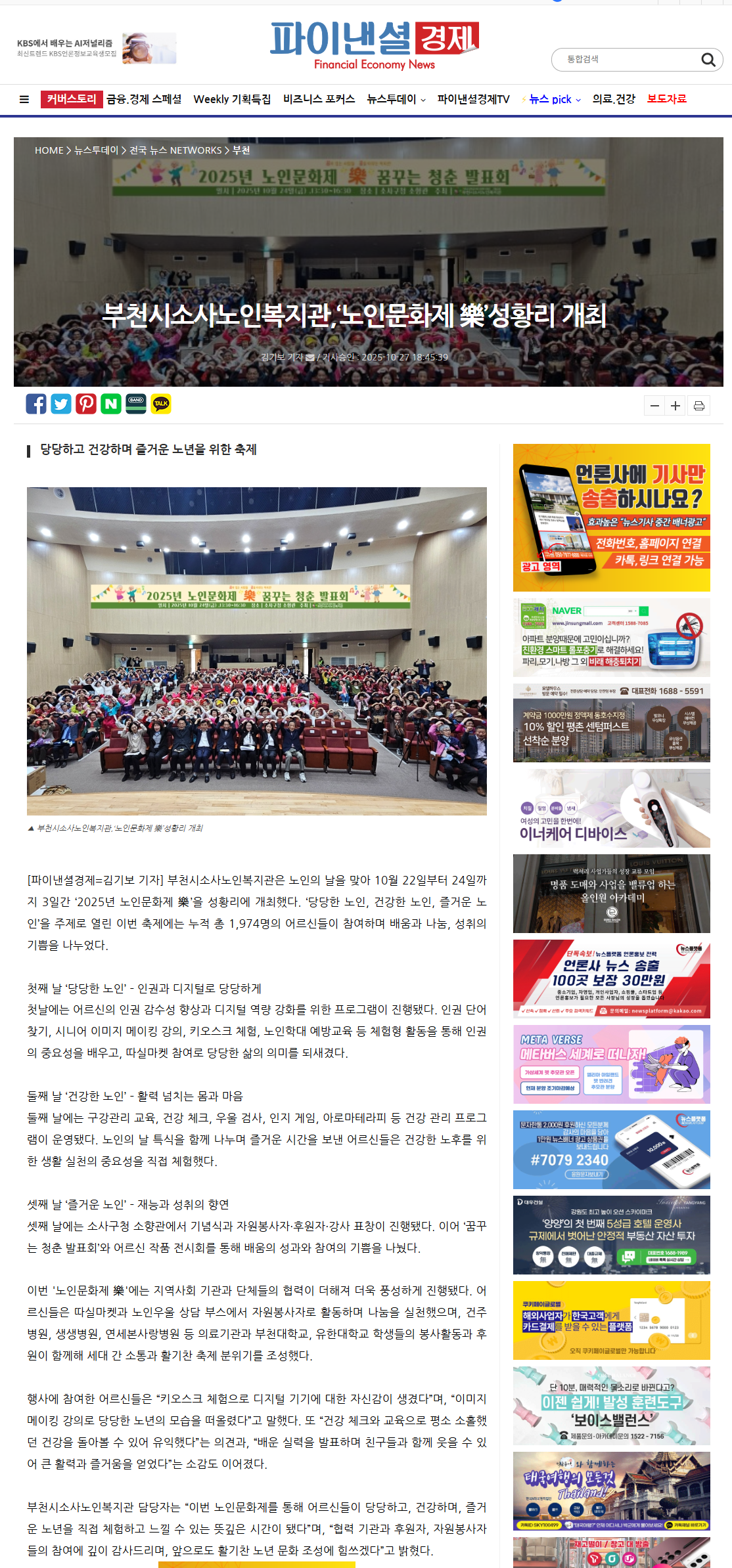 [파이낸셜경제]부천시소사노인복지관, '노인문화제樂' 성황리 개최