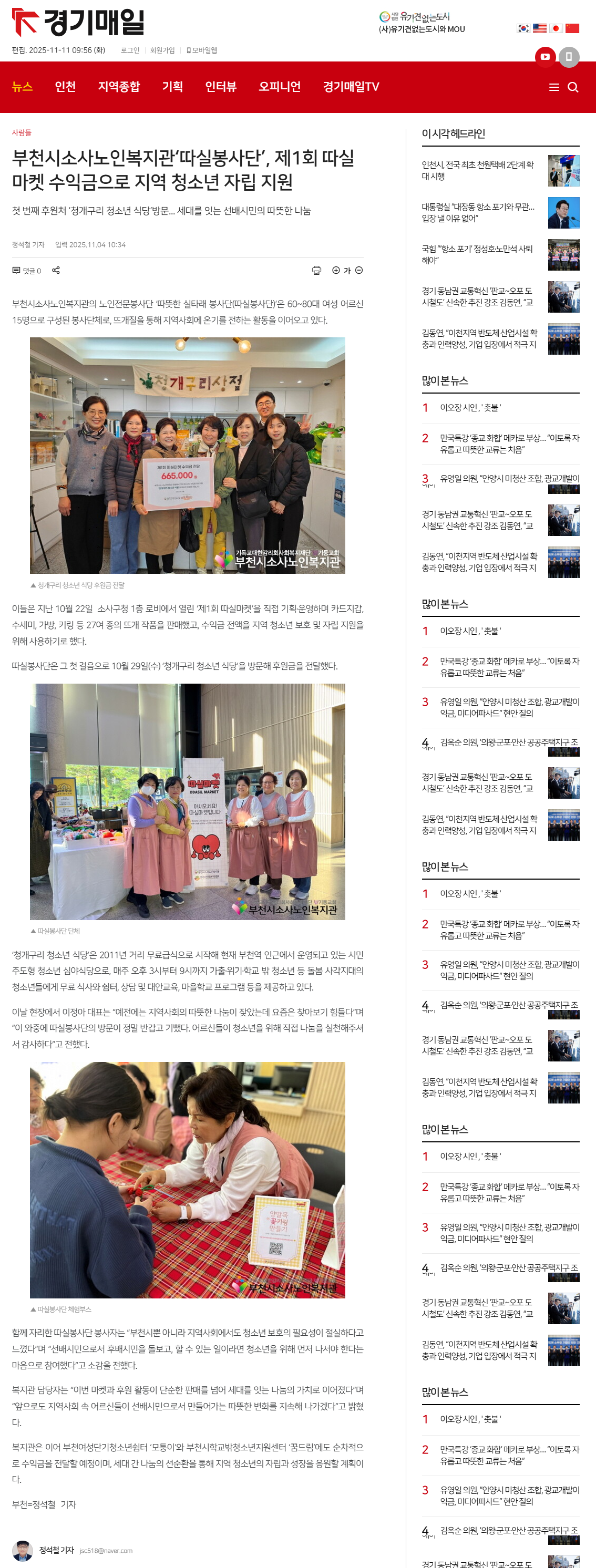 [경기매일]부천시소사노인복지관 '따실봉사단' 제1회 따실마켓 수익금으로 지역 청소년 자립 지원