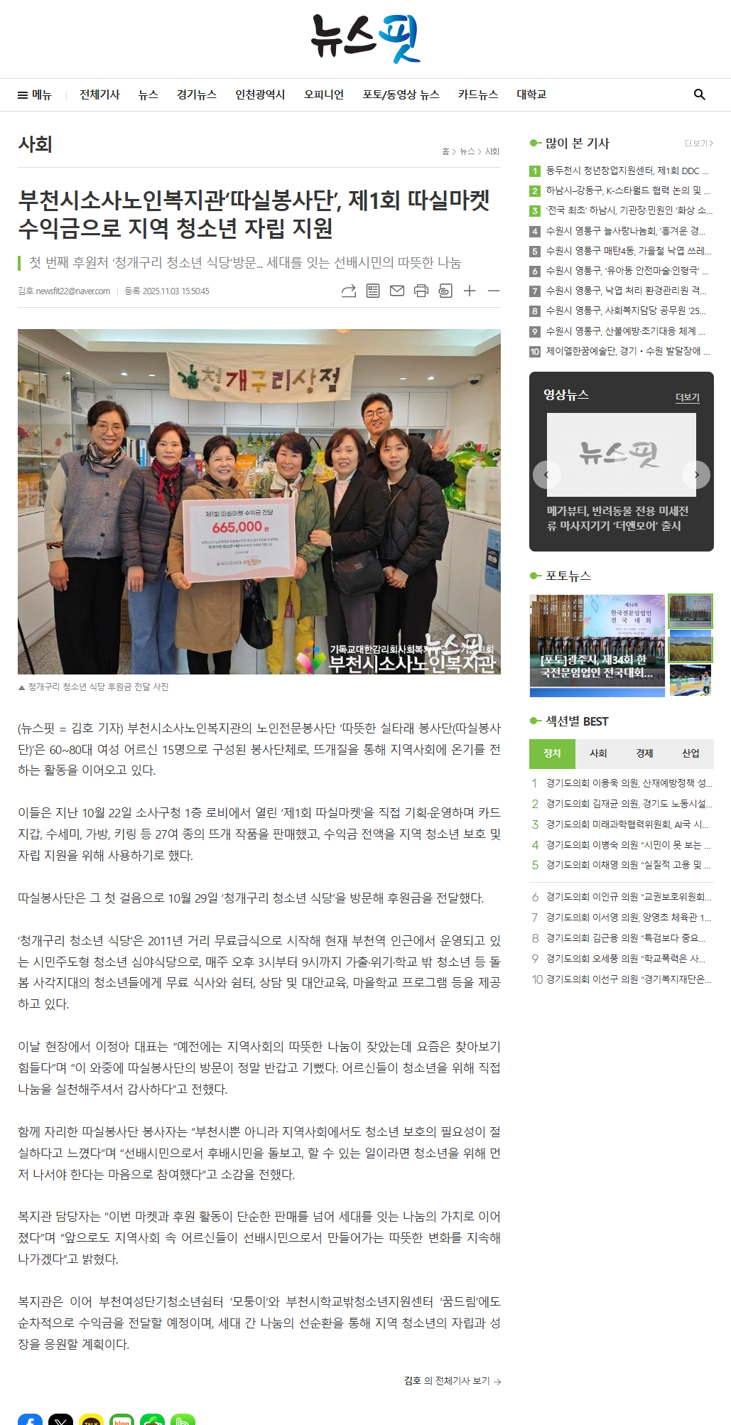 [뉴스핏]부천시소사노인복지관 '따실봉사단' 제1회 따실마켓 수익금으로 지역 청소년 자립 지원