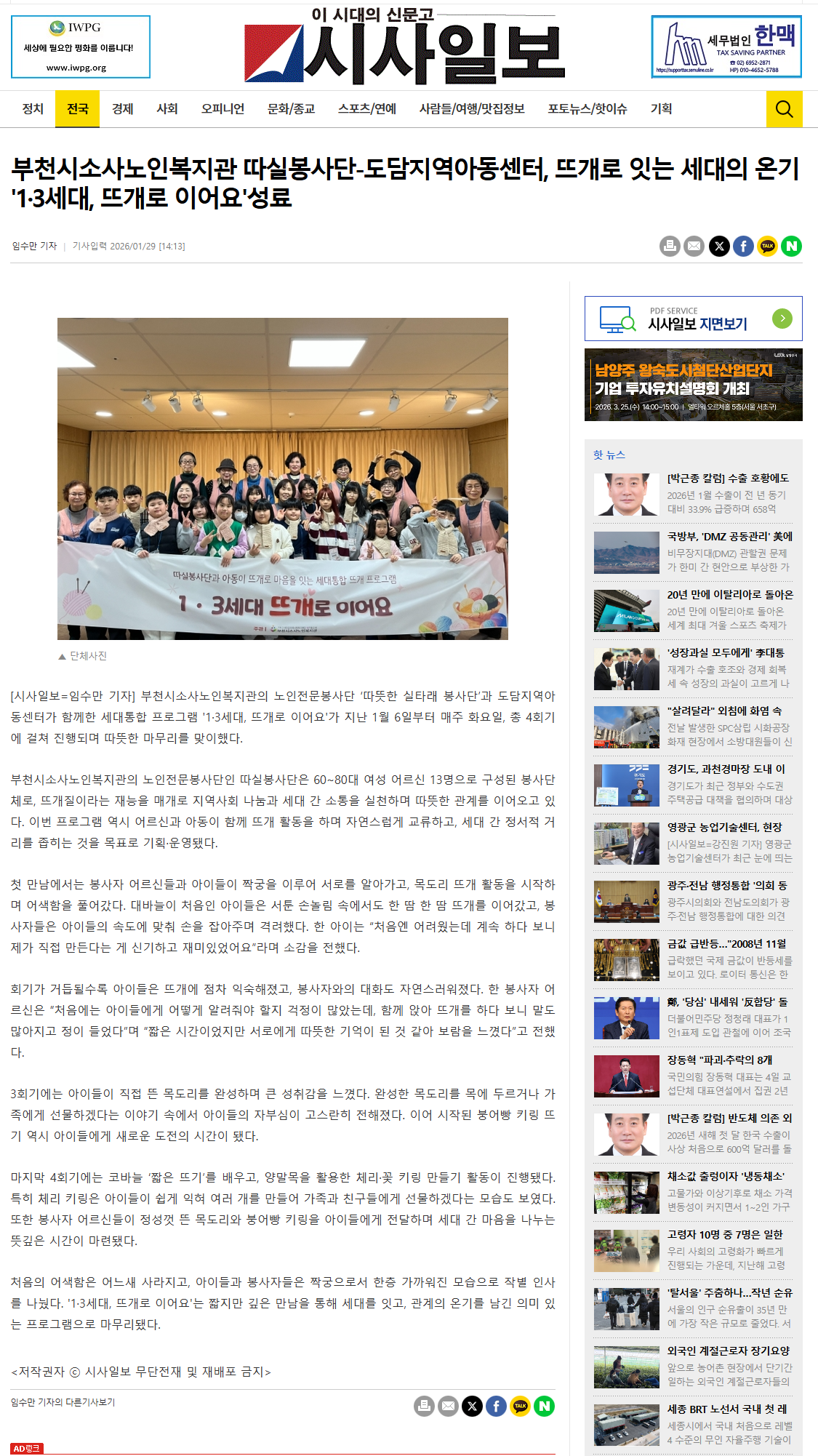 [시사일보]부천시소사노인복지관 따실봉사단-도담지역아동센터, 뜨개로 잇는 세대의 온기 '1,3세대, 뜨개로 이어요' 성료