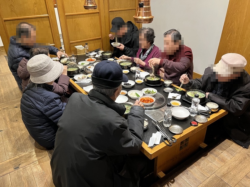 3월 생신을 맞이한 어르신 8명을 모시고 중동에 위치한 '천지연'으로 갈비탕을 대접해드렸습니다.