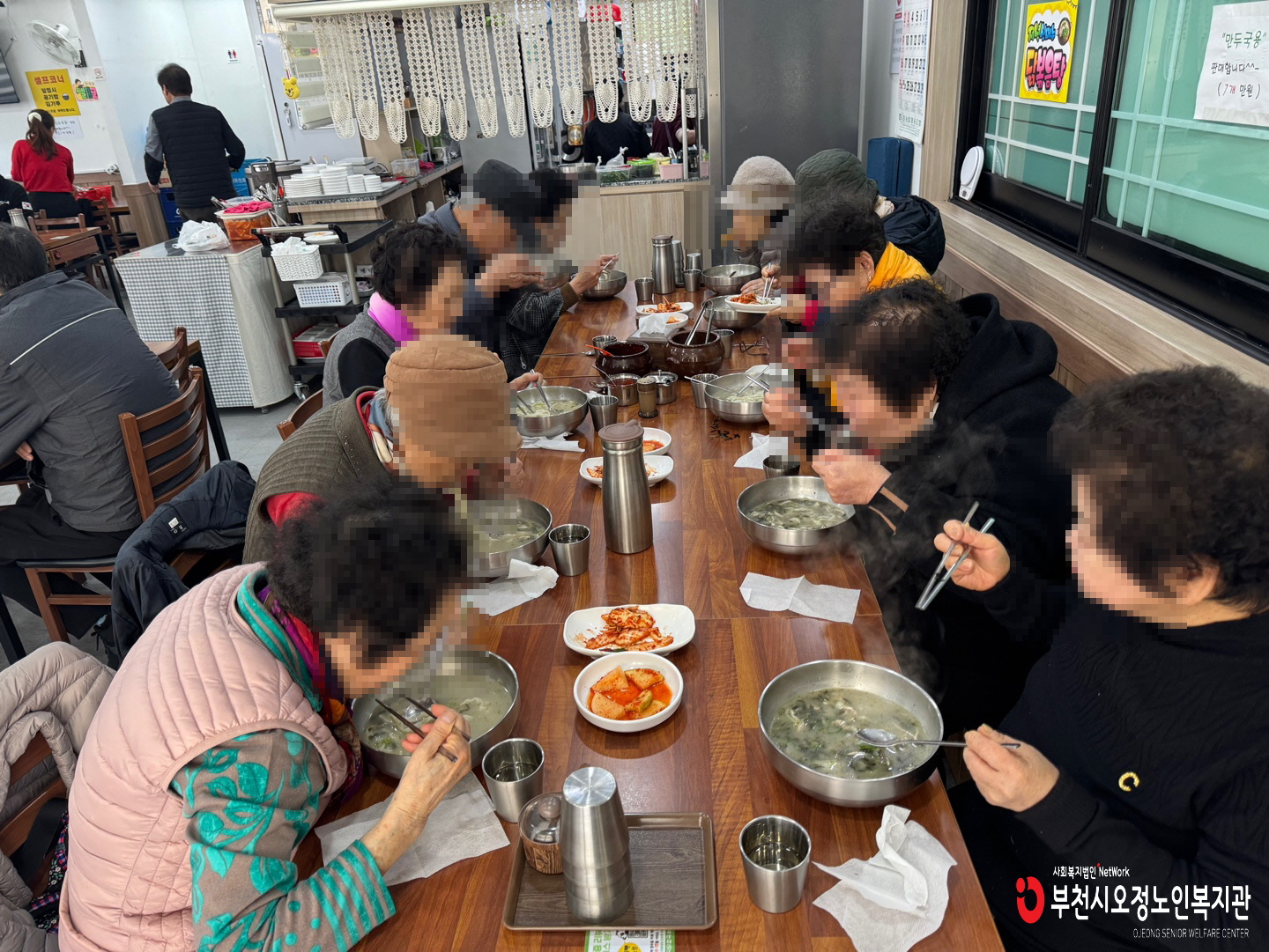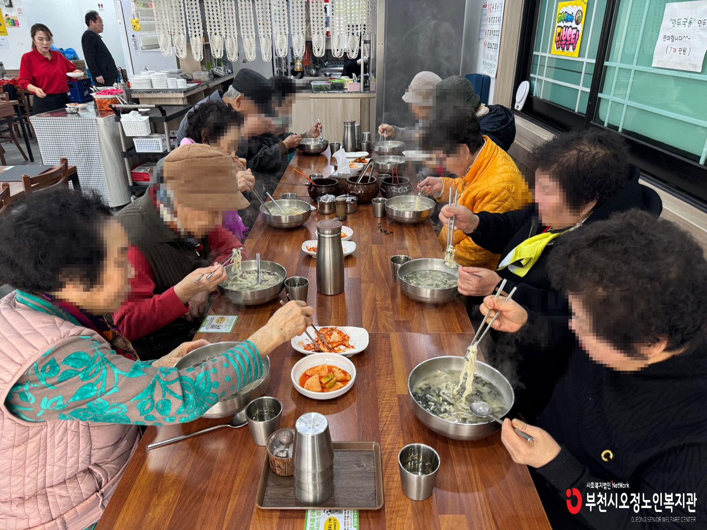 부천시오정노인복지관 노인맞춤돌봄서비스사업에서는 '미덕 닭칼국수'의 후원을 받아 노인맞춤돌봄서비스 이용 대상자 10명에게 식사를 지원했습니다.