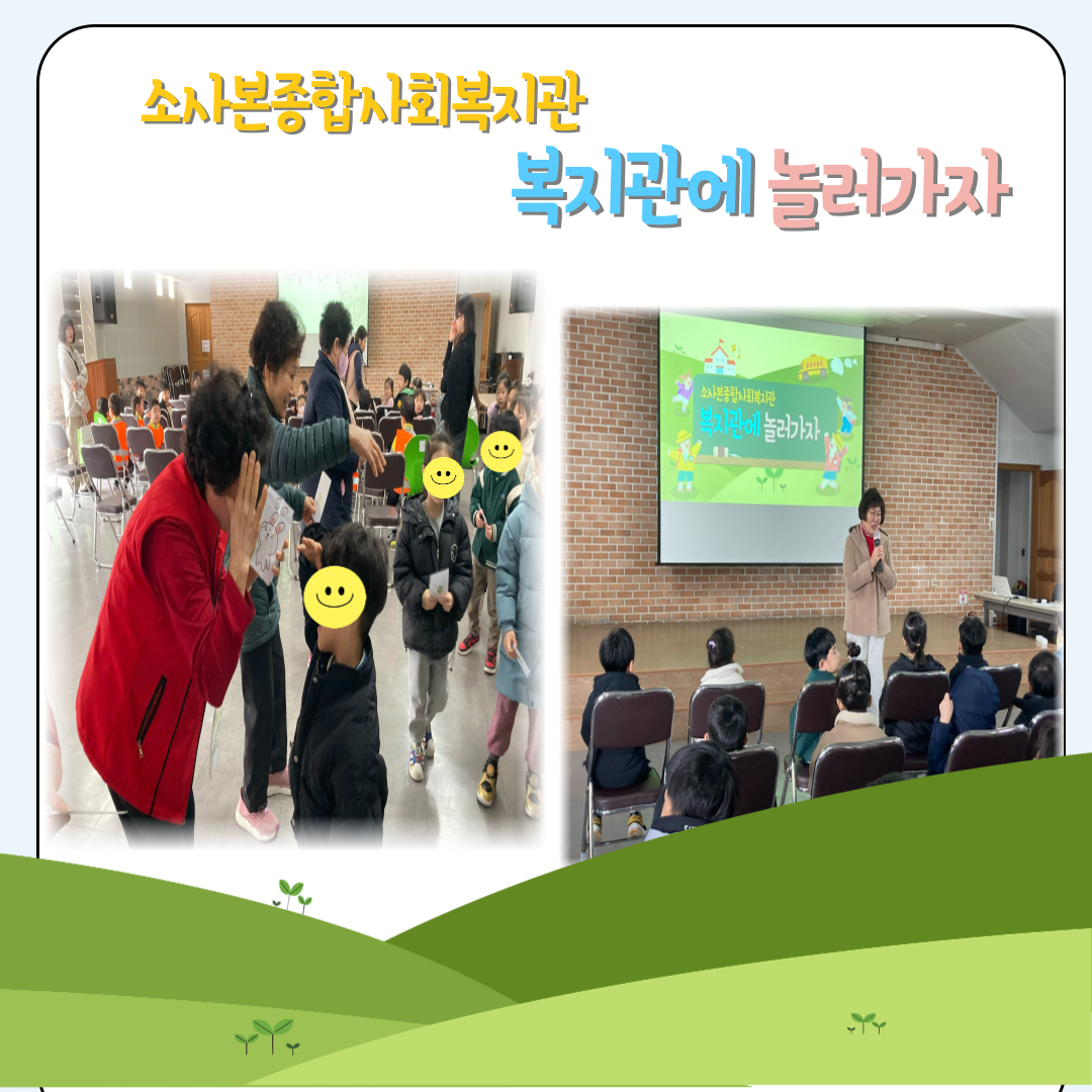 소사본동 어린이들이 훌륭한 어린이로 성장할 수 있도록 나눔 인성교육과 재밌는 활동을 하고있습니다.