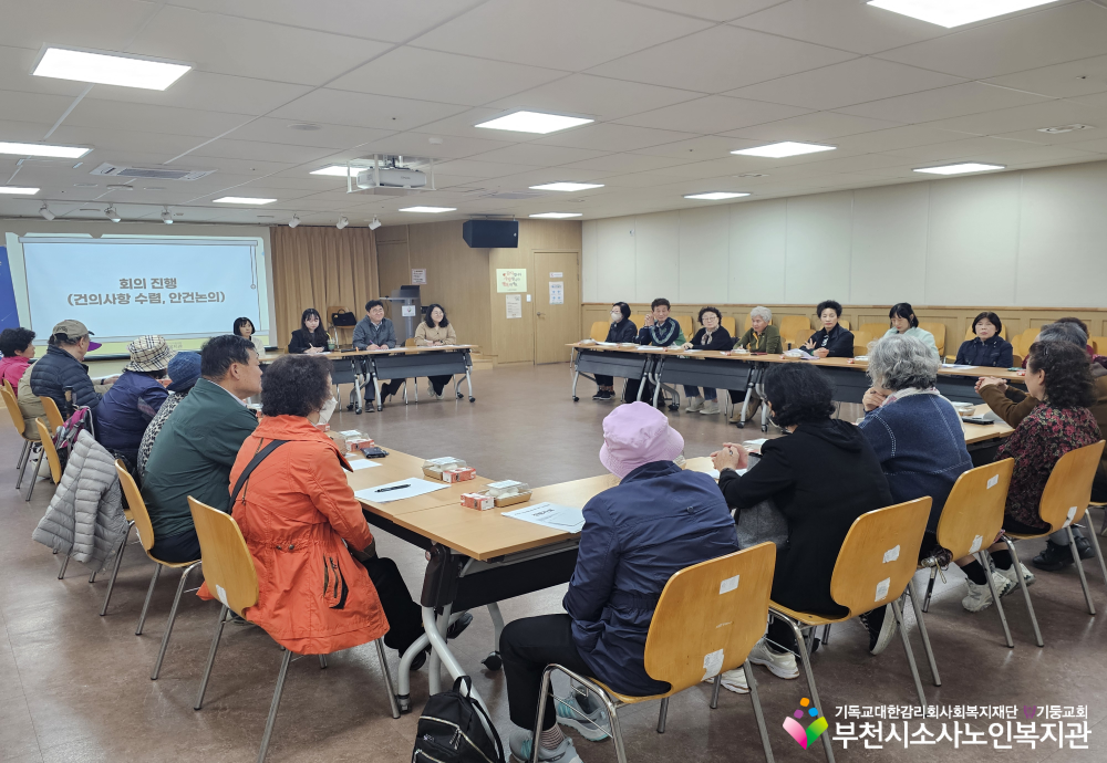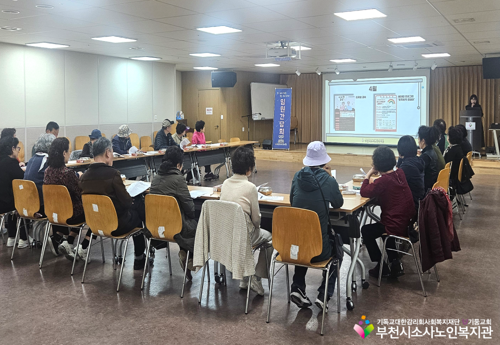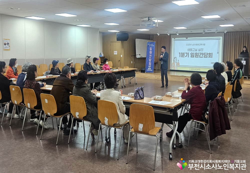 노년사회화교육사업에서 배움교실 실장님을 대상으로 1분기 임원간담회가 진행되었습니다. 각 반을 위한 실장님들의 적극적인 노력 덕분에 총 9건의 건의사항을 논의할 수 있었습니다!