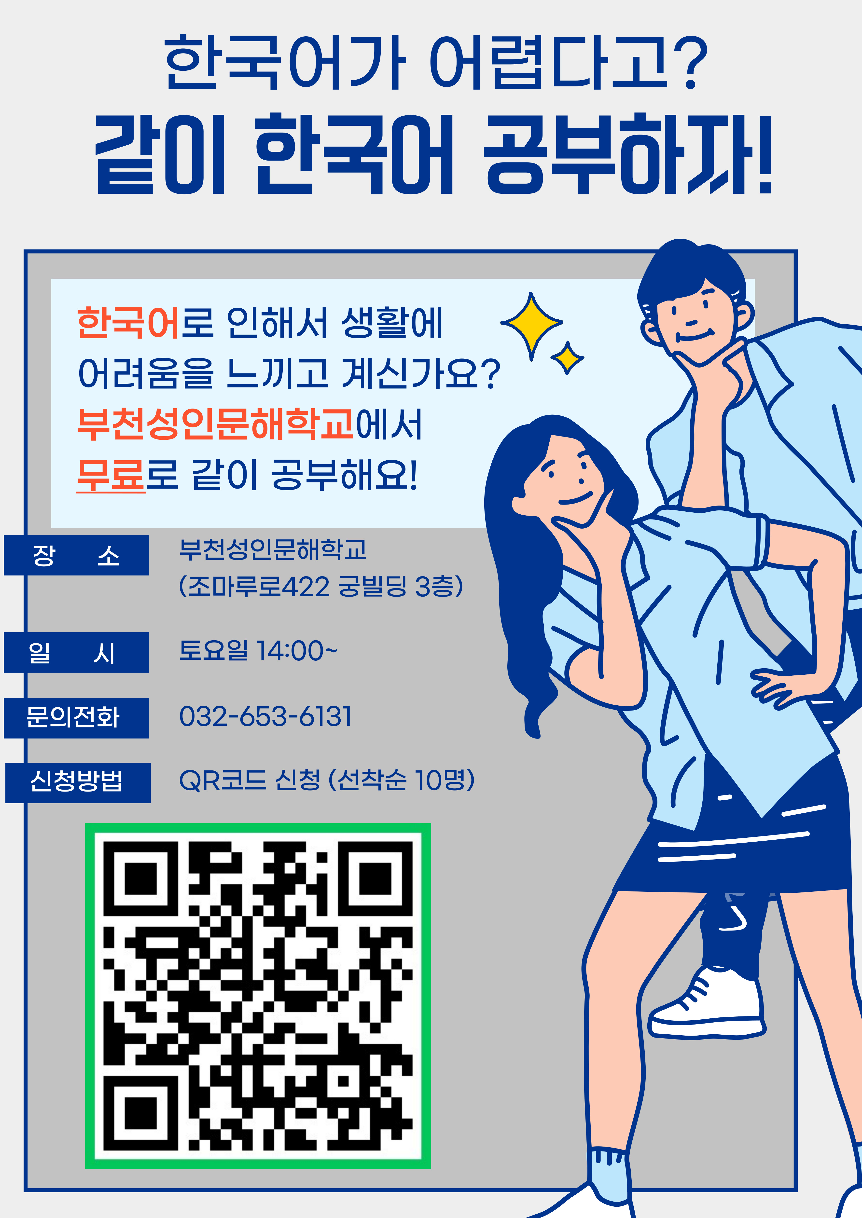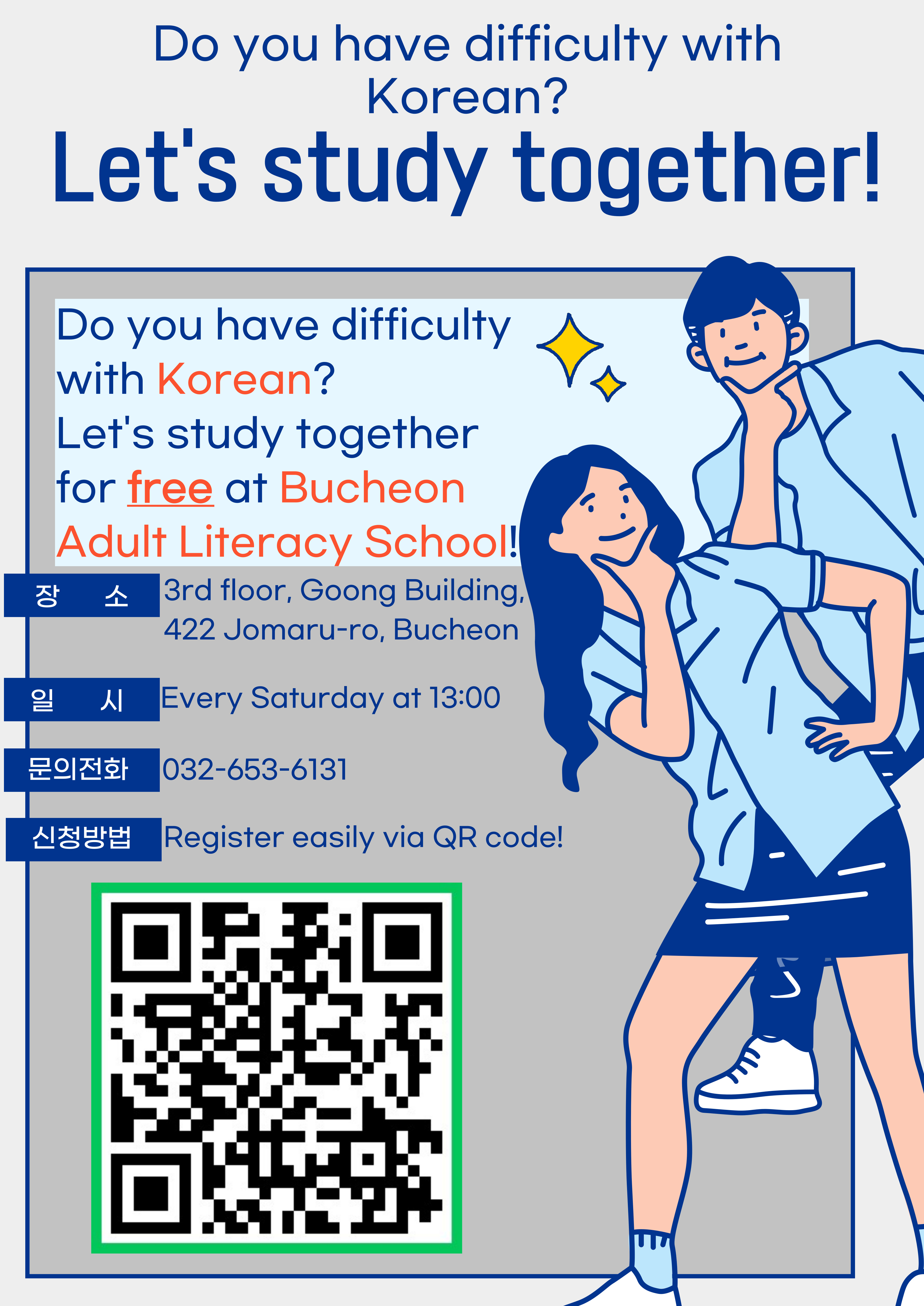 장소: 춘의종합사회복지관 내 부천성인문해학교(조마루로 422 궁빌딩 3층 부천성인문해학교)